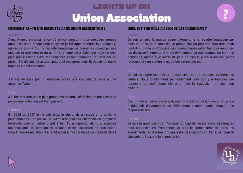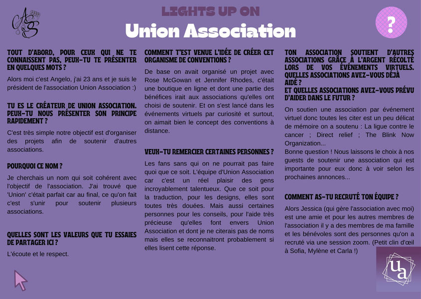 Nous vous présentons notre rubrique "Lights Up On", qui regroupera nos interviews de personnes talentueuses ou engagées présentes dans notre entourage !